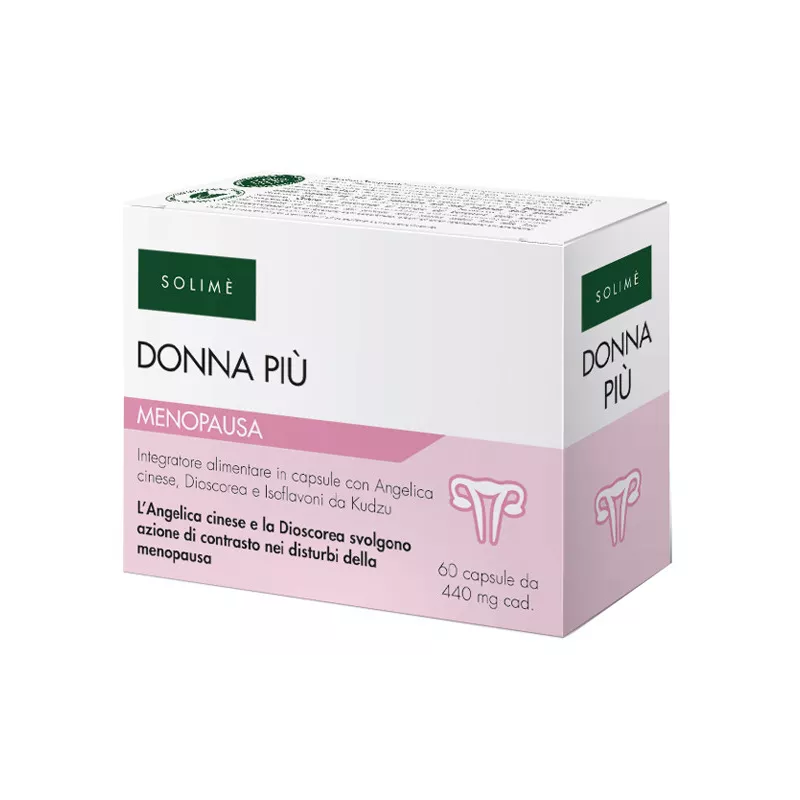 Descrizione Integratore alimentare in capsule con angelica cinese, dioscorea e isoflavoni da kudzu.