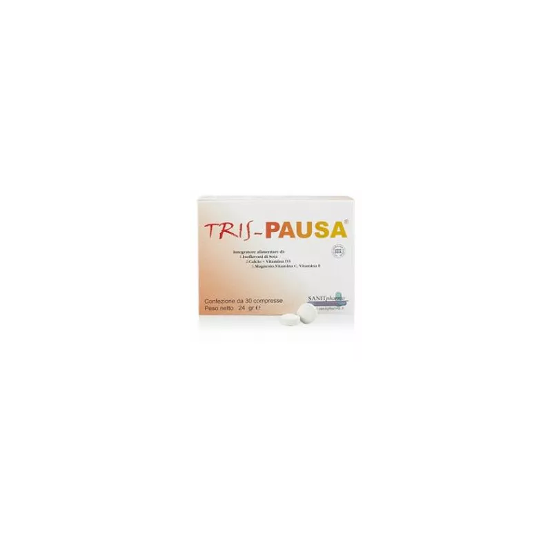 Integratore alimentare con Calcio, Vitamina D, Vitamina C, Vitamina E, Magnesio ed Isoflavoni di Soia. I componenti di TRIS-PAUSA possono contribuire a favorire il benessere della Donna dalla Pre-Menopausa in poi.