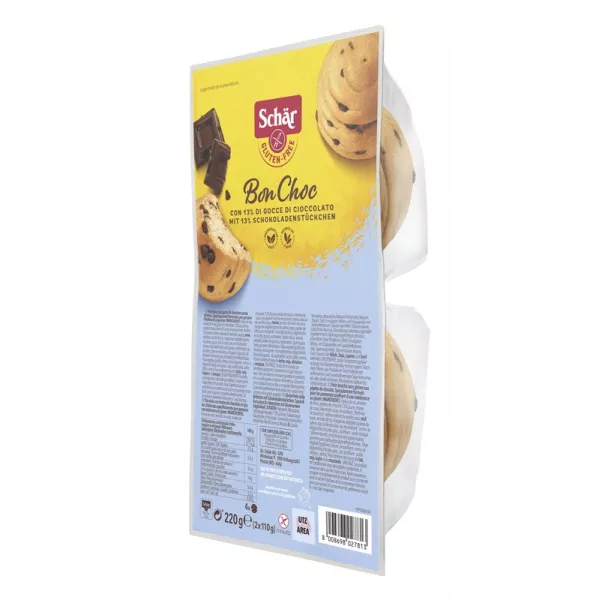 IngredientiFarina di riso, amido di mais, gocce di cioccolato 13% (zucchero, pasta di cacao, burro di cacao; emulsionante: lecitina di girasole; aroma naturale di vaniglia), acqua,