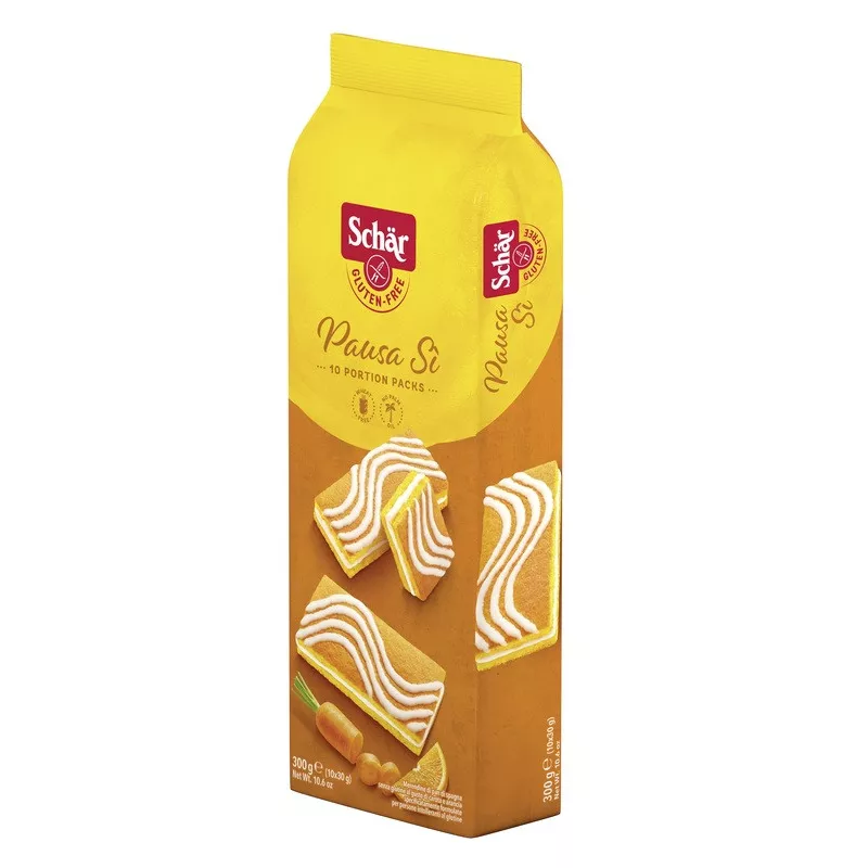 Descrizione Merendine di pan di spagna senza glutine al gusto di carota e arancia. Specificamente formulate per persone intolleranti al glutine.