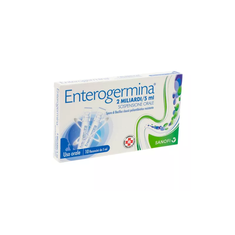 Enterogermina è un medicinale costituito da una sospensione di 4 ceppi (SIN, O/C, T, N/R) di spore di Bacillus clausii, abitualmente presente nell''intestino, privo di capacità di causare malattie (privo di potere patogeno).