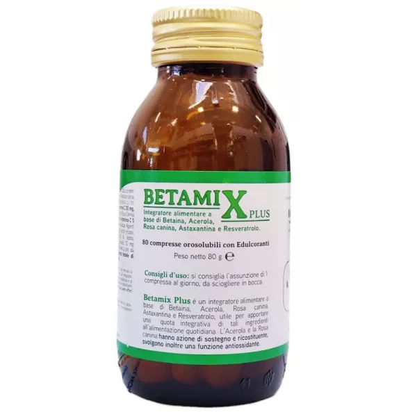 Descrizione Integratore a base di betaina, acerola, rosa canina, astaxantina e resveratrolo, utile per apportare una quota integrativa di tali ingredienti all'alimentazione quotidiana.