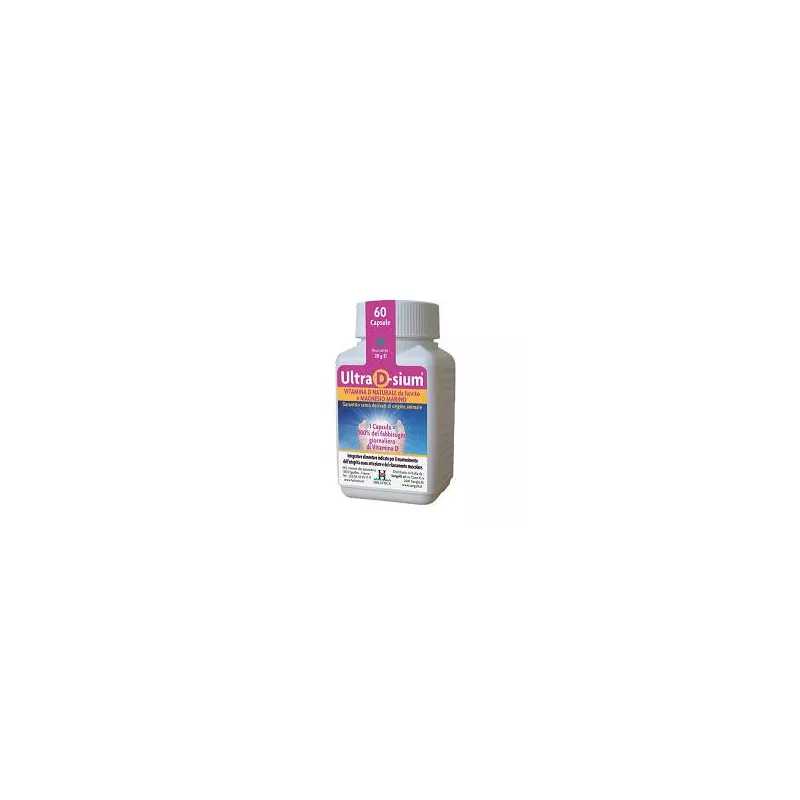 Complemento alimentarea a base di vitamina D vegetale e magnesio; indicato per il mantenimento dell'integrità osseo-articolare e della funzionalità muscolare. Una sola capsula di Ultra D-sium apporta il 100% di RDA (apporto giornaliero raccomandato) in Vitamina D in sinergia con il magnesio marino. Senza derivati animali.
