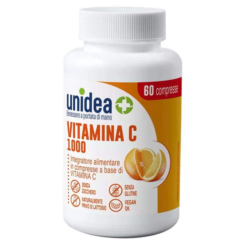 Descrizione Integratore alimentare in compresse a base di vitamina C.