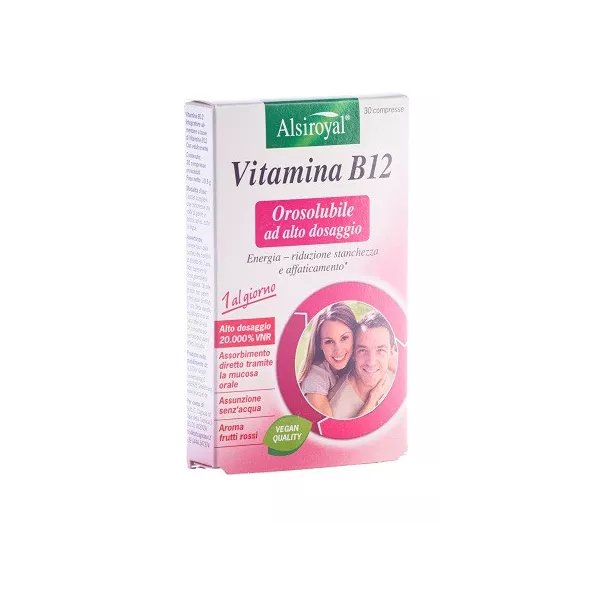 Descrizione Vitamina B12 orosolubile ad alto dosaggio. Utile per aumentare l'energia per ridurre la stanchezza e l'affaticamento. Alto dosaggio 20.000% VNR*. Assorbimento diretto tramite la mucosa orale. Assunzione senz'acqua. Aroma ai frutti di bosco. Adatto a vegani.