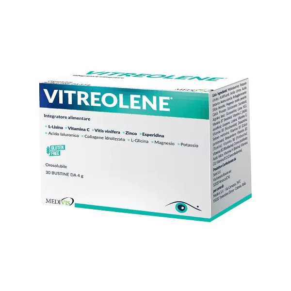 Descrizione Integratore alimentare a base di L-lisina, vitamina C, Vitis vinifera, zinco, esperidina, acido ialuronico, collagene idrolizzato, L-glicina, magnesio e potassio.