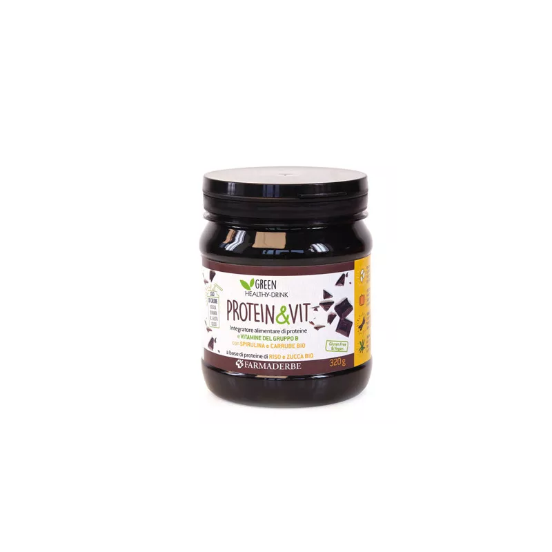 Descrizione Integratore alimentare di proteine e vitamine del gruppo B, con spirulina e carrube bio.