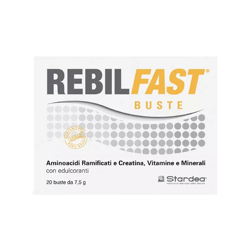 Descrizione Intergatore alimentare e rappresenta un complemento alla dieta di soggetti che necessitano nutrienti utili alla fisiologica funzione della muscolatura. REBILFAST apporta amminoacidi ramificati, nutrienti utili nella dieta dello sportivo e associa creatina, vitamine e minerali. La creatina (nella dose di assunzione di 3 g/die) è in grado di incrementare le prestazioni fisiche di adulti che praticano un esercizio fisico intenso, in caso di attività ripetitive di elevata intensità e di breve durata. Zinco e magnesio contribuiscono alla normale sintesi proteica, il calcio e il magnesio presenti contribuiscono inoltre ad un fisiologico metabolismo energetico e ad una normale funzione muscolare. La presenza di vitamina B6 contribuisce ad un normale metabolismo delle proteine e del glicogeno, e alla riduzione della stanchezza e dell’affaticamento. La vitamina C contribuisce alla normale formazione del collagene per la fisiologica funzionalità di ossa e cartilagini. REBILFAST è senza zuccheri e può essere adatto anche per soggetti diabetici.