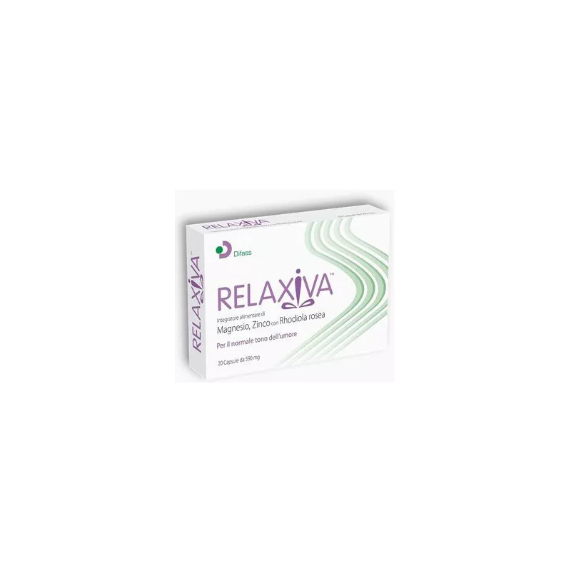 Relaxiva è un integratore alimentare di magnesio e zinco con rhodiola rosea. La rhodiola contribuisce al mantenimento del normale tono dell'umore, e ha funzione tonico adattogena per la stanchezza fisica e mentale. Il magnesio contribuisce all'efficienza della funzione psicologica. Il contributo del magnesio alla normale funzione psicologica comprende sia ambiti cognitivi che affettivi, intendendo aspetti mentali e nervosi come la concentrazione, l'apprendimento, la memoria e il ragionamento. Infine, la presenza dello zinco supporta la funzione cognitiva, come la resistenza allo stress.