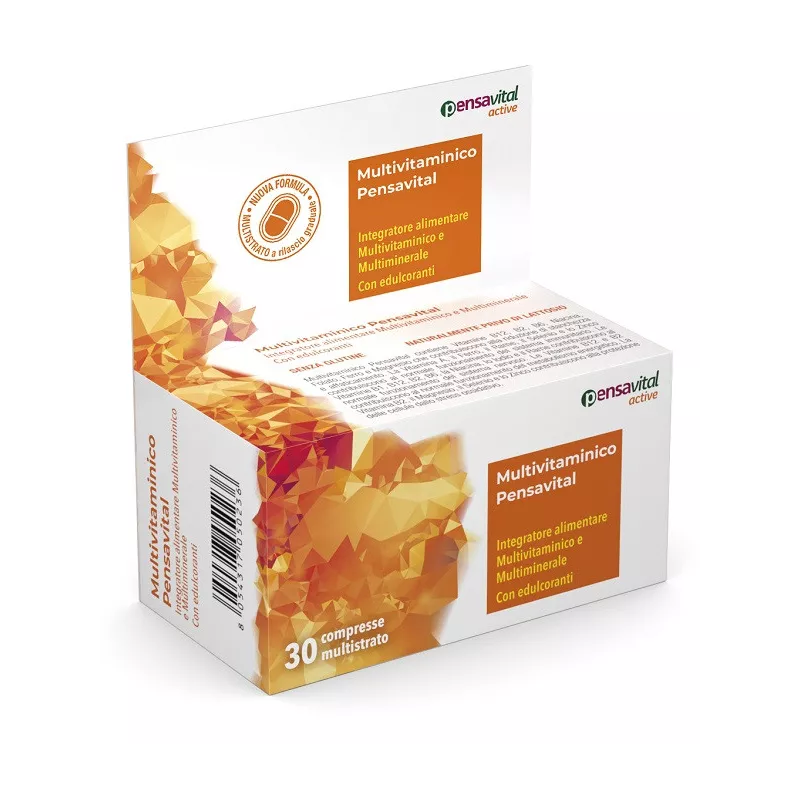 Descrizione Integratore alimentare multivitaminico e multiminerale con edulcoranti.