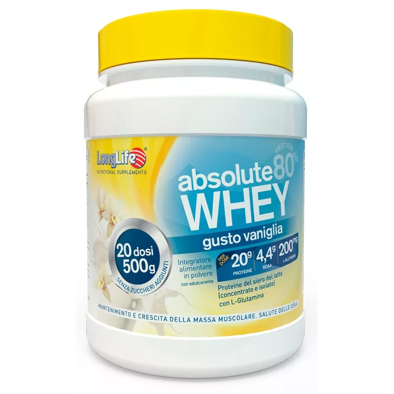Descrizione Integratore alimentare di proteine ad elevato valore biologico utile nelle situazioni di ridotto apporto proteico con la razione alimentare o di aumentato fabbisogno. Le proteine contribuiscono alla crescita ed al mantenimento della massa muscolare e aiutano la salute delle ossa. Absolute WHEY, oltre a contenere proteine del siero di latte ad elevata assimilabilità e solubilità, contiene L-glutamina, un aminoacido importante per il metabolismo proteico.