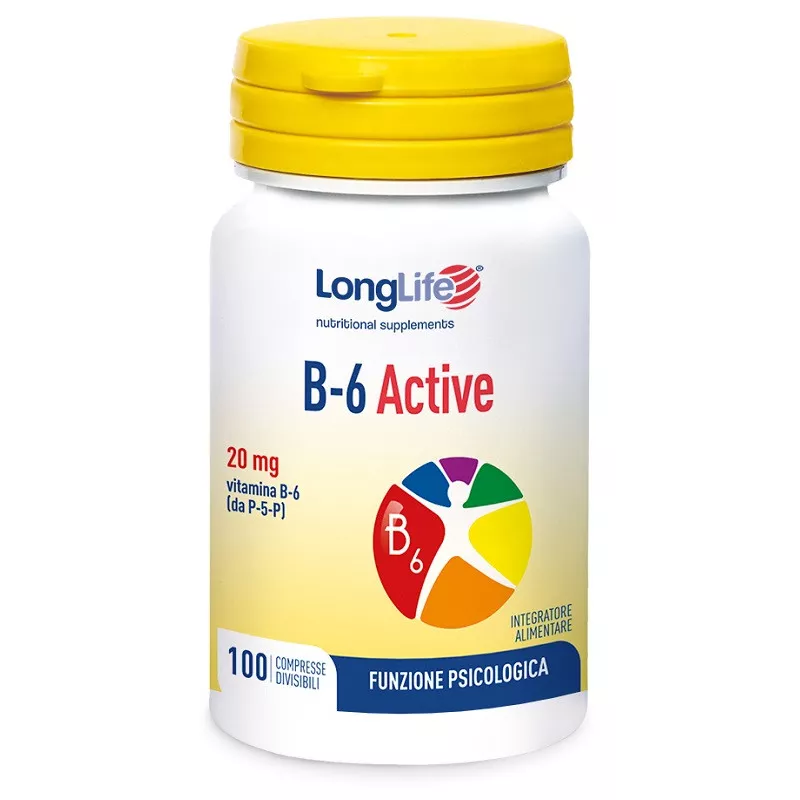 La vitamina B6 supporta la funzione psicologica, il metabolismo energetico, delle proteine, del glicogeno e dell'omocisteina. Inoltre, è coinvolta nel funzionamento del sistema nervoso e immunitario, nel processo di formazione dei globuli rossi, nella regolazione dell'attività ormonale e nella riduzione di stanchezza e affaticamento.