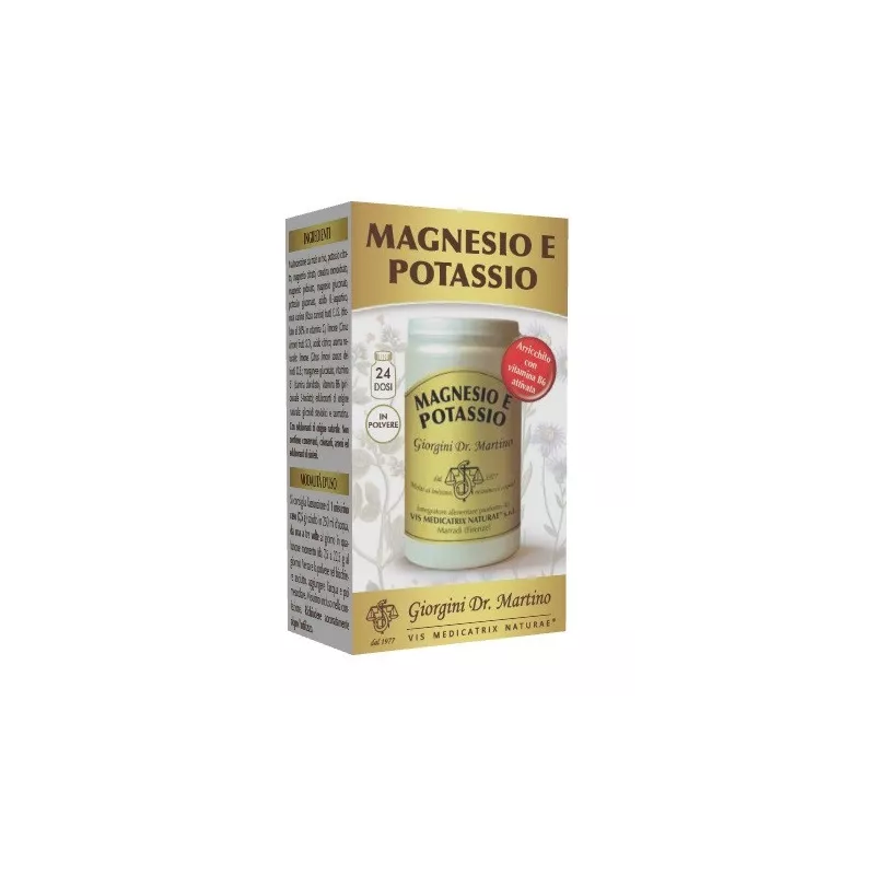 Descrizione Integratore alimentare a base di magnesio e potassio arricchito con acido aspartico, creatina ed altri nutritivi. Arricchito con vitamina B6 attivata. Il magnesio interviene nel processo di divisione cellulare, favorisce l'equilibrio elettrolitico, la sintesi proteica e il benessere di ossa e denti. Insieme al potassio favorisce la funzione muscolare, mentre con le vitamine B1, B6, e C promuove il corretto funzionamento del sistema nervoso e contribuisce alle normali funzioni psicologiche. Il potassio, inoltre, risulta utile per il mantenimento di una normale pressione sanguigna. Infine, magnesio, vitamine B6 e C aiutano a contrastare la stanchezza e l'affaticamento e con il manganese promuovono il metabolismo energetico.