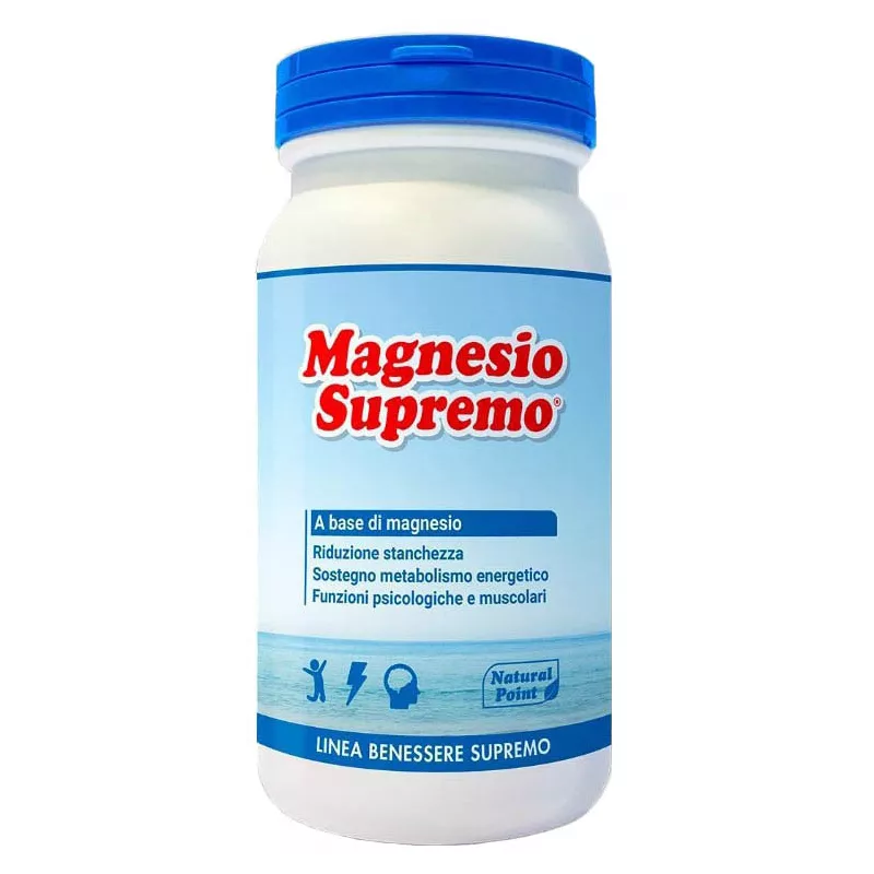 Magnesio supremo è un integratore alimentare che apporta magnesio citrato in forma organica altamente solubile con alta velocità di assorbimento.