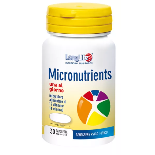 Questo integratore, ricco di vitamine, minerali ed elementi traccia, è stato formulato per coprire le esigenze nutrizionali giornaliere dell'organismo. Efficace in caso di ridotto apporto con la dieta o di un aumentato fabbisogno, la supplementazione con Micronutrients è in grado di rispettare un adeguato piano d'integrazione finalizzato a mantenere il benessere psicofisico dell'organismo.