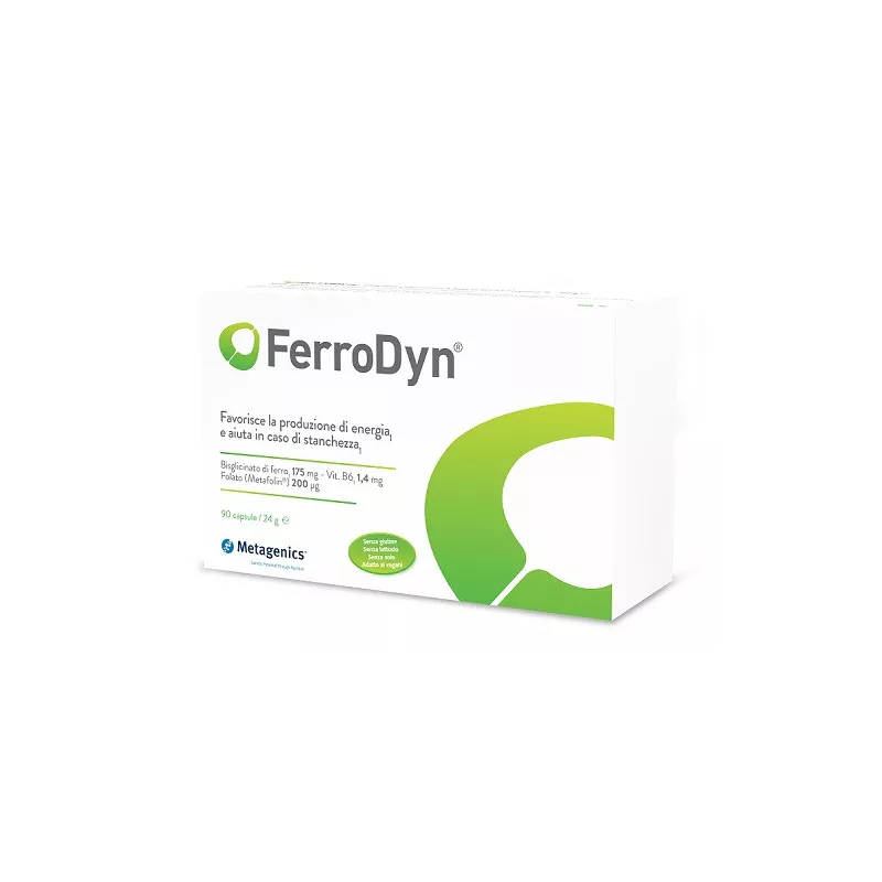 Descrizione Integratore alimentare a base di ferro e vitamine B, favorisce la produzione di energia e aiuta in caso di stanchezza. È una formulazione completa di ferro che sostiene la formazione dei globuli rossi, la produzione di energia e aiuta in caso di affaticamento. La forma di ferro utilizzata è bivalente, chelata a due amminoacidi a formare il Bisglicinato di ferro. La ricerca scientifica ha dimostrato che questa formulazione di ferro è ben assorbita dall’organismo e presenta una buona tollerabilità gastrointestinale. Il Metafolin è la forma naturale più attiva ed efficace di folato: è immediatamente disponibile e attiva nell’organismo.