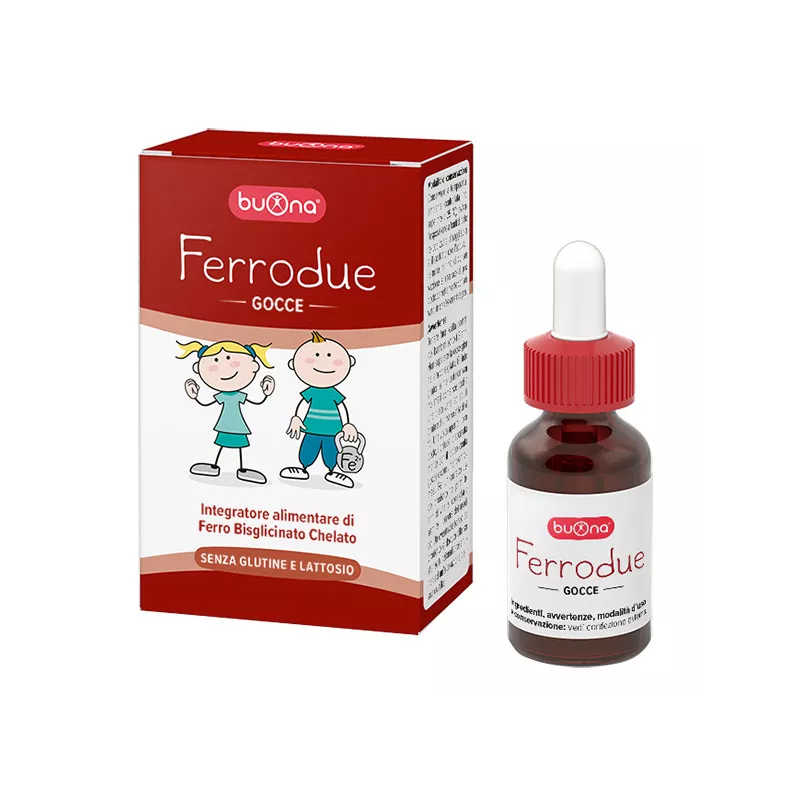Il ferro contribuisce alla normale formazione dei globuli rossi e dell’emoglobina, alla riduzione della stanchezza e dell’affaticamento e al normale sviluppo cognitivo dei bambini. Ferrodue contiene ferro bisglicinato chelato, ottenuto con una soluzione tecnologicamente avanzata, che assicura un’ottima tollerabilità a livello gastrointestinale oltre che un’elevata biodisponibilità.
