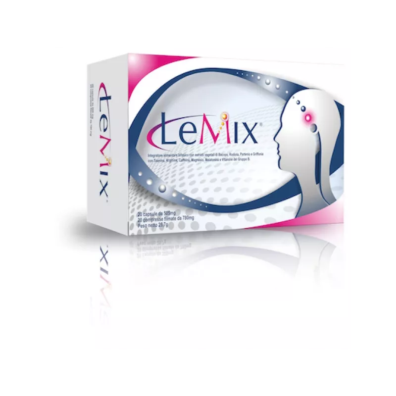 Compressa azzurra: partenio [Tanacetum parthenium (L.) Sch. Bip., capsula] e.s. tit. 0,8% partenolidi, magnesio carbonato; agente di carica: cellulosa microcristallina; L-arginato cloridrato, Griffonia [Griffonia simplicifolia (DC.) Baill., semen] e.s. tit. 20% 5-HTP: agente di carica: idrossipropilcellulosa; agenti antiagglomeranti: sali di magnesio degli acidi grassi, biossido di silicio; vitamina B2 (riboflavina), melatonina; agenti di rivestimento: E464, E170, E1521, E553b, E132, E172, E133, E904, E472a, E1201.