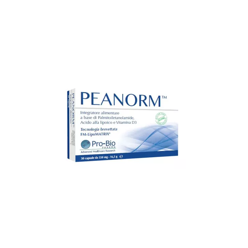 Ingredienti Palmitoiletanolamide (PEA), gelatina (capsula); agente di carica: carbonato di calcio, olio di lino semi, acido alfa lipoico; agente antiagglomerante: biossido di silicio; vitamina D3 (colecalciferolo).