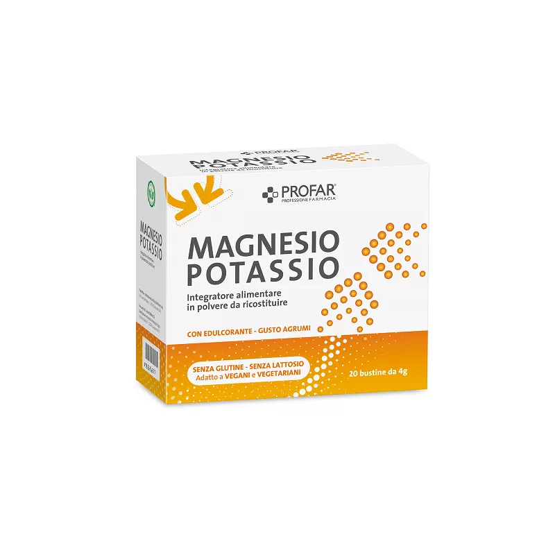 Descrizione integratore alimentare di magnesio e potassio con edulcorante, indicato in tutti i casi in cui ci sia un ridotto apporto di magnesio e potassio o negli stati di aumentato fabbisogno, come ad esempio debolezza muscolare, regime alimentare con un ridotto apporto calorico o intensa sudorazione e/o attività fisica.