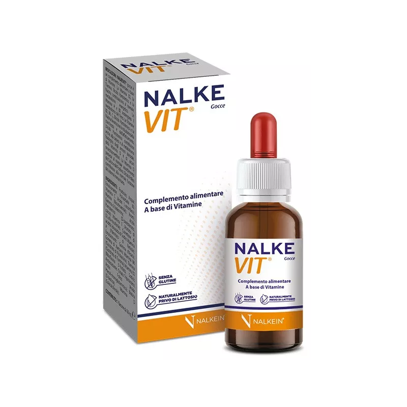 NALKEVIT® gocce è un complemento alimentare a base di Vitamine, indicato nei casi di ridotto apporto con la dieta o di aumentato fabbisogno di tali elementi. Le Vitamine B1, B2, B5 e la Niacina contribuiscono al normale metabolismo energetico. Le Vitamine A e B2 sostengono il metabolismo del Ferro, le Vitamine B2, B5, B6, C e la Niacina favoriscono la riduzione della stanchezza e dell’affaticamento. La vitamina B5 contribuisce anche alla sintesi e al metabolismo fisiologico degli ormoni steroidei, della Vitamina D e di alcuni neurotrasmettitori. La Vitamina D presiede al normale assorbimento del Calcio e del Fosforo. L’Acido Folico contribuisce alla normale funzione del sistema immunitario.