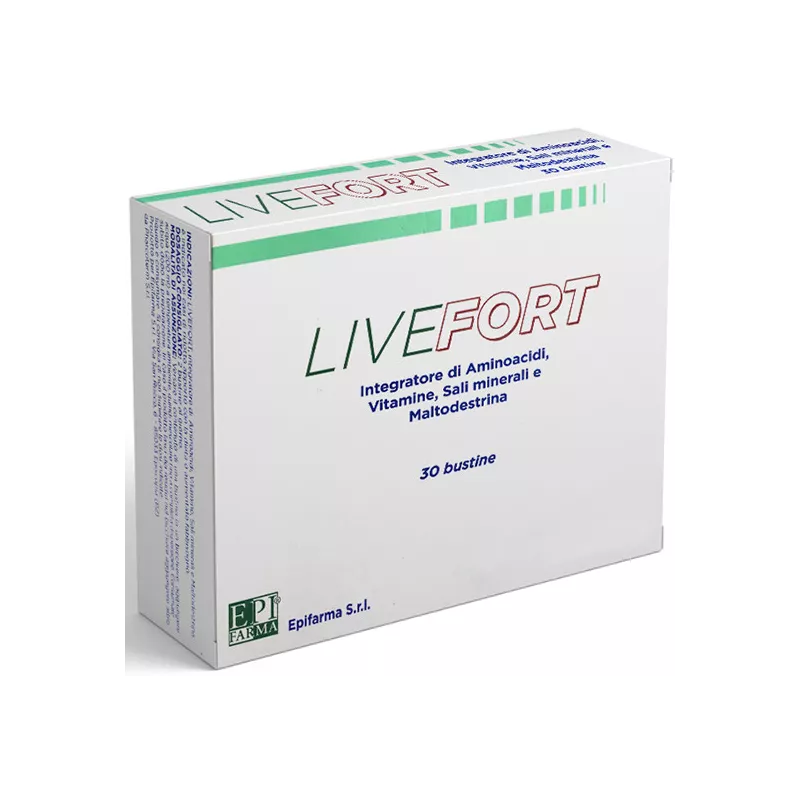 LIVEFORT è un integratore alimentare a base di amminoacidi, arricchito con Vitamine, Sali minerali e Maltodestrina. Migliora il metabolismo del muscolo, rendendo più efficiente la produzione di energia. Incrementa la sintesi delle proteine muscolari e plasmatiche. Contrasta la perdita di massa muscolare e contribuisce al suo normale funzionamento. Migliorare il metabolismo dei lipidi e dei carboidrati. Contribuisce al corretto equilibrio elettrolitico.