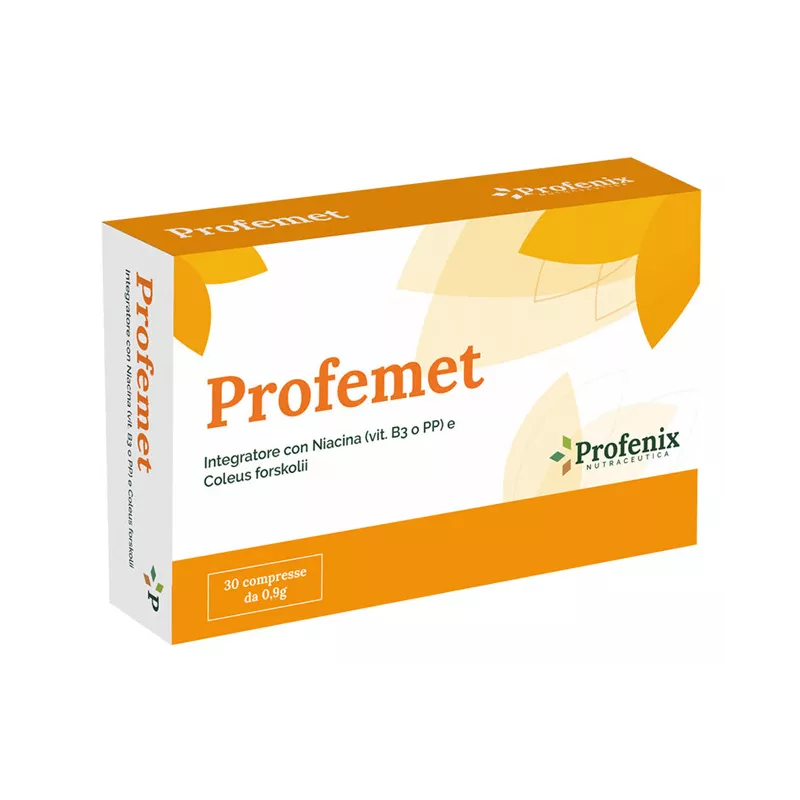 La niacina contribuisce al normale metabolismo energetico, al normale funzionamento del sistema nervoso, al mantenimento di membrane mucose normali, alla riduzione della stanchezza e dell’affaticamento. Profemet contiene anche Riso rosso fermentato.