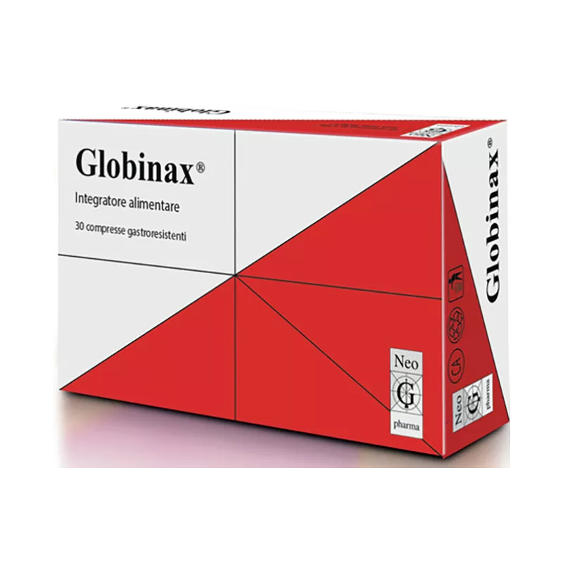 Globinax® è un integratore alimentare a base di ferro (Lipofer®), folato (Quatrefolic®), vitamina B12, vitamina B2, luteina e vitamina C. Il ferro e la vitamina B12 contribuiscono alla normale formazione dei globuli rossi. Il ferro contribuisce alla normale formazione dell’emoglobina e al normale trasporto di ossigeno nell’organismo. Il folato contribuisce alla normale emopoiesi. La vitamina B2 contribuisce al normale metabolismo del ferro e al mantenimento di globuli rossi normali. La vitamina C accresce l’assorbimento del ferro. Il ferro, la vitamina B12, la vitamina B2 e la vitamina C contribuiscono al normale metabolismo energetico. Il ferro, il folato, la vitamina B12, la vitamina B2 e la vitamina C contribuiscono alla riduzione della stanchezza e dell’affaticamento. Il folato contribuisce alla crescita dei tessuti materni in gravidanza.