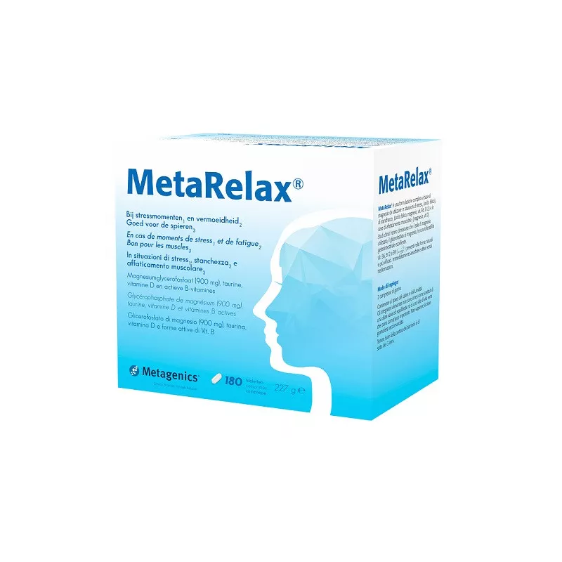 Ingredienti Glicerofosfato di magnesio, taurina; agenti di carica: maltodestrine e idrossipropilcellulosa; agente antiagglomerante: sali di magnesio degli acidi grassi; agente di carica: carbonato di magnesio; agenti antiagglomeranti: carbossimetilcellulosa sodica reticolata e biossido di silicio; vitamina D (colecalciferolo), vitamina B6 (piridossale-5-fosfato); agente di carica: fosfato bicalcico, folato (L-metilfolato di calcio), vitamina B12 (metilcobalamina).