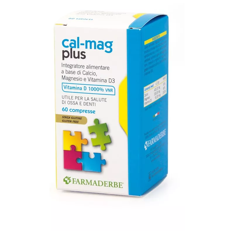 Calcio carbonato, magnesio ossido; agenti di carica: cellulosa microcristallina, idrossipropilcellulosa e sodio carbossimetil cellulosa; sorbitolo; antiagglomeranti: mono e digliceridi degli acidi grassi; biossido di silicio, sodio borato, colecalciferolo (vitamina D3).