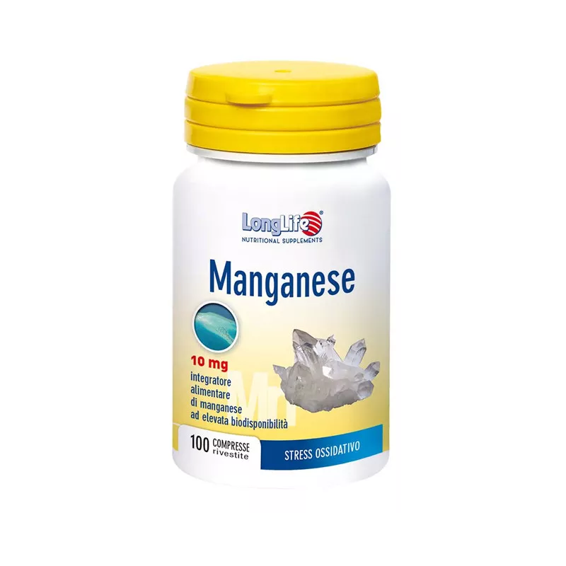 Descrizione Integratore alimentare di manganese oligoelemento antiossidante utile per la salute delle ossa e la formazione del tessuto connettivo. Adatto a vegetariani e vegani.