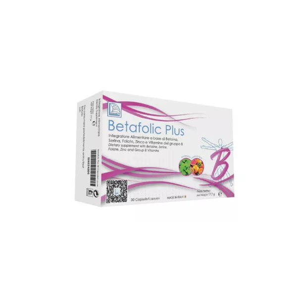 Descrizione Betafolic Plus è un integratore alimentare a base di betaina, serina, folato, zinco e vitamine del gruppo B. Le vitamine B2, B6 e B12 contribuiscono al normale funzionamento del sistema nervoso ed alla riduzione della stanchezza e dell'affaticamento. Lo zinco contribuisce alla normale funzione cognitiva, alla sintesi del DNA, alla protezione delle cellule dallo stress ossidativo e alla normale funzione del sistema immunitario. Il folato contribuisce al normale metabolismo dell'omocisteina, alla sintesi degli aminoacidi ed alla fisiologica emopoiesi. Quatrefolic è il metabolita attivo dell'acido folico.