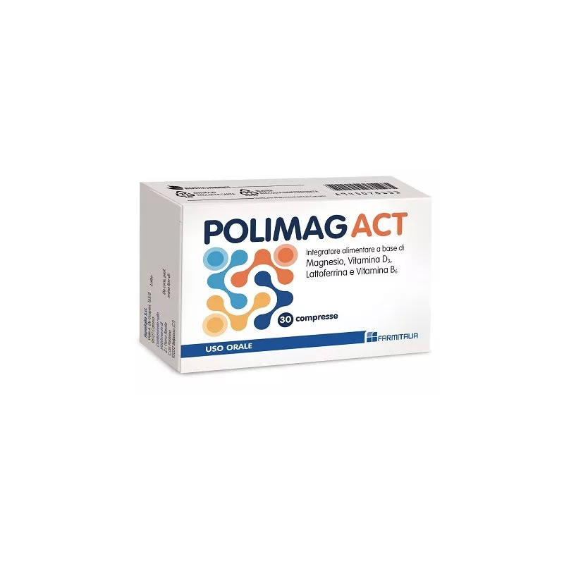 Polimag Actè un integratore a base di vitamine e sali minerali: Magnesio, Vitamina D3, Lattoferrina, Vitamina B6 la cui assunzione riporta i valori di tali nutrienti a quelli fisiologici, riduce il senso di stanchezza e affaticamento, stimola il metabolismo energetico e quello immunitario.