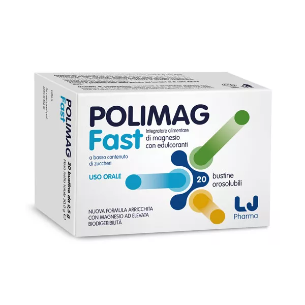 L'innovativa formulazione in polvere orosolubile si distingue per la praticità d'uso; infatti, POLIMAG Fast si scioglie direttamente in bocca e può essere quindi assunto ovunque, anche senza bisogno d'acqua.