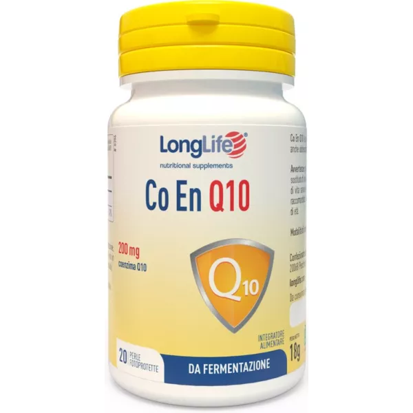 Descrizione Integratore alimentare di coenzima Q10 (detto anche ubidecarenone), un fattore simil-vitaminico liposolubile che nell'organismo ha un'azione antiossidante e partecipa a diversi processi cellulari producenti energia.