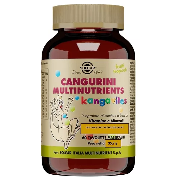 Descrizione Integratore alimentare a base di Vitamine e Minerali con zuccheri ed edulcoranti.
