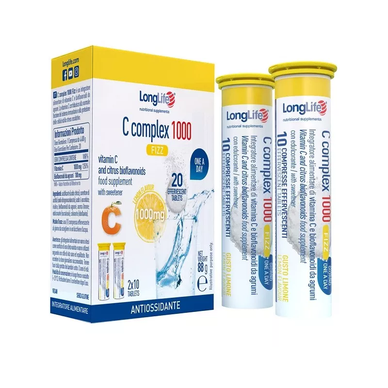 Descrizione Integratore alimentare di vitamina C e bioflavonoidi da agrumi. La vitamina C contribuisce alla normale funzione del sistema immunitario e alla protezione delle cellule dallo stress ossidativo.
