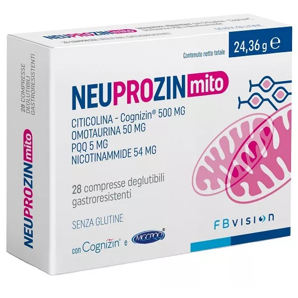 Ingredienti Cognizin-citicolina; agenti antiagglomeranti: acidi grassi, carbossimetilcellulosa sodica reticolata, sali di magnesio degli acidi grassi, biossido di silicio, trigliceridi a media catena, talco; agente di carica: cellulosa microcristallina (gel di cellulosa); nicotinammide (vitamina PP); omotaurina; maltodestrina; agenti di rivestimento: etilcellulosa, idrossi-propil-metilcellulosa, idrossi-propil-cellulosa, polivinilpirrolidone; stabilizzanti: polidestrosio, alginato di sodio; MGCPQQ-sale disodico di pirrolochinolina chinone (PQQ); colorante: ossidi di ferro.