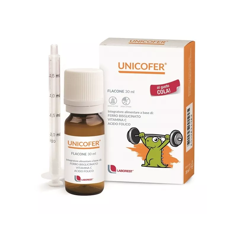 Descrizione Integratore alimentare a base di ferro bisglicinato, vitamina C e acido folico, utile per integrare eventuali carenze o apportare una quota supplementare di tali sostanze. Il ferro presente in Unicofer è nella forma bisglicinata, ovvero è chelato: questa particolare tecnica farmaceutica permette di massimizzare il suo assorbimento, evitando eventuali problematiche gastroenteriche, quali pesantezza gastrica, reflussi gastroesofagei e diarrea che sono tipiche dell’integrazione di questo minerale.