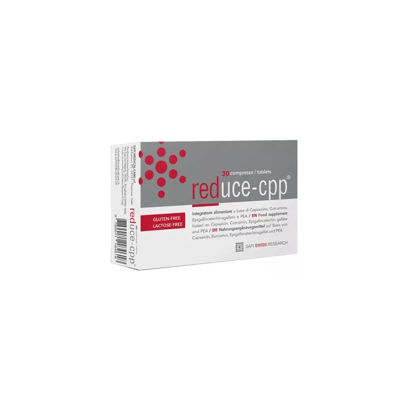Ingredienti Palmitoiletanolamide, epigallocatechingallato 50% da [Camellia sinensis (L.) Kuntze], curcuminoidi da Curcuma longa L.; agenti di carica: cellulosa microcristallina, calcio fosfato bibasico; agente antiagglomerante: carbossimetilcellulosa sodica reticolata; agenti di rivestimento: amido pregelatinizzato, talco, gommalacca, glicerolo; capsico frutti (Capsicum annuum L.) e.s. tit. 2% capsaicina; colorante: biossido di titanio; agenti antiagglomeranti: biossido di silicio, sali di magnesio degli acidi grassi.