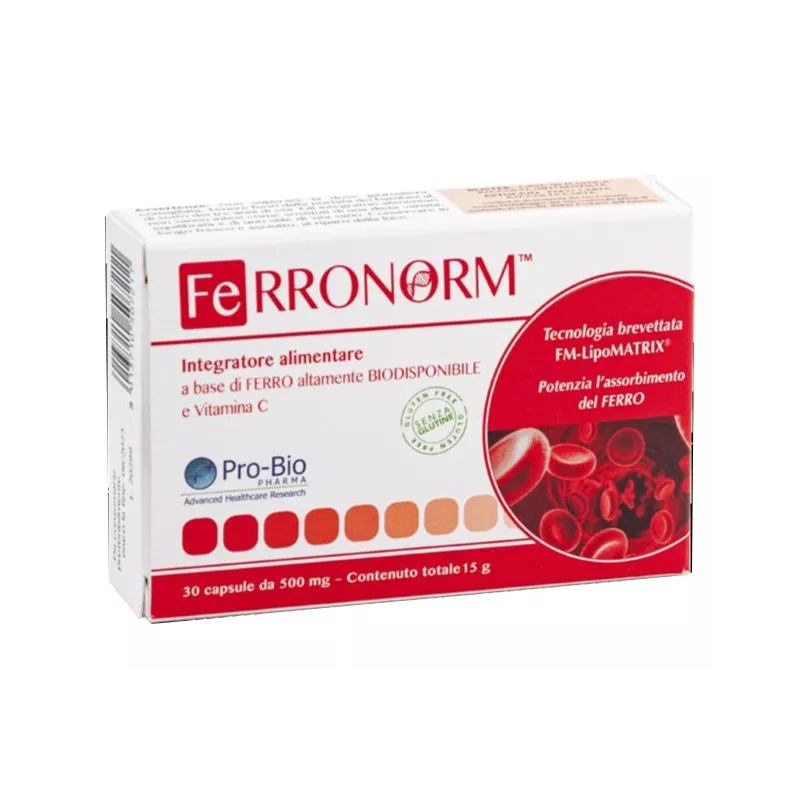 La tecnologia brevettata FM-LipoMATRIX potenzia l'assirbimento del ferro. Il ferro contribuisce alla normale formazione dei globuli rossi e dell'emoglobina, supporta il normale trasporto di ossigeno nell'organismo e supporta la funzione cognitiva. La vitamina C accresce l'assorbimento del ferro, sostiene la formazione del collagene per la normale funzione dei vasi sanguigni, delle ossa, delle cartilagini, della pelle, dei denti e delle gengive, supporta la funzione psicologica e contribuisce alla protezione delle cellule dallo stress ossidativo. Il ferro e la vitamina C supportano la funzione del sistema immunitario, il normale metabolismo energetico e favoriscono la riduzione della stanchezza e dell'affaticamento.
