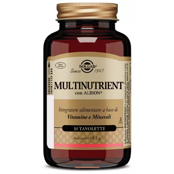 Ingredienti Agente di carica: cellulosa microcristallina; calcio (carbonato di calcio), magnesio (ossido di magnesio), vitamina C (acido L-ascorbico), estratto standardizzato di agrumi (pericarpo di arancia, Citrus sinsensis L.; pericarpo di pompelmo, Citrus paradisi Macfad; pericarpo di limone, Citrus limon Burm. F.; frutto di lime, Citrus aurantifolia Swingle; pericarpo di mandarino, Citrus reticolata L.) 25% bioflavonoidi; rivestimento: Aquapolish F Viola [agente di carica: idrossipropilmetilcellulosa; amido di mais; agente di carica: idrossipropilcellulosa; succo di frutta e verdura (concentrato di ravanello, ribes nero, mela); agente di carica: calcio fosfato dibasico; olio di semi di girasole, estratto di spirulina]; colina bitartrato, beta-carotene, mio-inositolo; addensante: carbossimetilcellulosa sodica reticolata; agente antiagglomerante: acido stearico vegetale; amido di pisello, alga norvegese [Ascophyllum nodosum (L.) Le Jolis] e.s. di tallo (0,5% iodio); agente antiagglomerante: biossido di silicio; rutina, calcio (bisglicinato di calcio), magnesio (bisglicinato di magnesio), betaina cloridrato, niacina (niacinamide), vitamina E (succinato acido di D-alfa-tocoferile); agente di rivestimento: idrossipropilmetilcellulosa; zinco (ossido di zinco), ferro (bisglicinato di ferro); agente antiagglomerante: magnesio stearato vegetale; boro (acido borico), rame (bisglicinato di rame), acido pantotenico (D-pantotenato, calcio), manganese (bisglicinato di manganese), selenio (L-selenometionina), D-biotina, zinco (bisglicinato di zinco), esperidina; miscela erbale [alfalfa (Medicago sativa L.) sommità fiorite polverizzate; Malpighia glabra L. estratto secco (4:1) di frutti; prezzemolo (Petroselinum crispum Mill. Fuss.) foglie polverizzate, crescione (Nasturtium officinale R. Brown) parti aeree polverizzate, Rosa canina L. frutti polverizzati]; umidificante: glicerolo vegetale; vitamina D (ergocalciferolo), acido folico (acido pteroilmonoglutammico); agente di rivestimento: idrossipropilmetilcellulosa; vitamina B6 (cloridrato di piridossina), vitamina B2 (riboflavina), vitamina B1 (mononitrato di tiamina); agente di carica: mannitolo; cromo (picolinato di cromo); agente di rivestimento: cera carnauba; vitamina B12 (cianocobalamina).