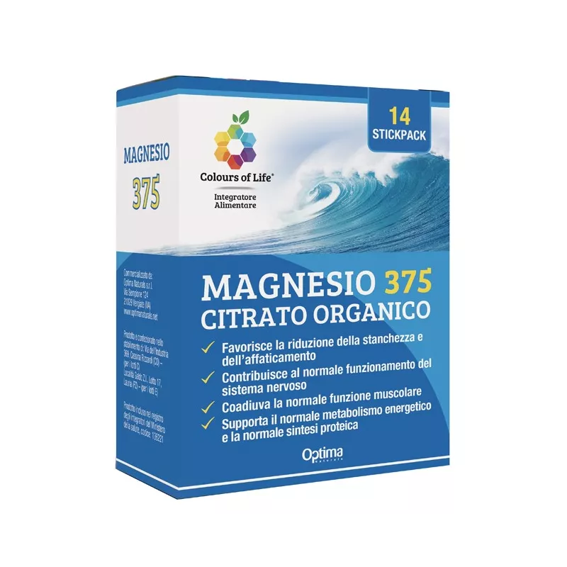 Il magnesio favorisce la riduzione della stanchezza e dell'affaticamento, contribuisce al normale funzionamento del sistema nervoso, coadiuva la normale funzione muscolare e supporta il normale metabolismo energetico e la normale sintesi proteica.