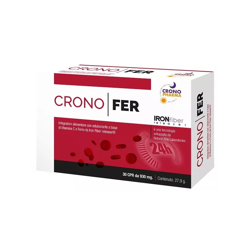 Cronofer è indicato in caso di ridotto apporto alimentare o aumentato fabbisogno di ferro. Il ferro nell’organismo contribuisce alla naturale formazione dei globuli rossi e dell’emoglobina, al normale trasporto di ossigeno nell’organismo e alla normale funzione cognitiva.