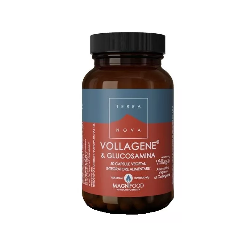 Ingredienti Vollagen complesso di aminoacidi (L-arginina, L-arginina HCl, acido L-aspartico, acido L-glutammico, glicina, L- istidina, L-isoleucina, L-leucina, L-lisina HCl, L-metionina, L-prolina, L-serina, L-treonina, L-tirosina, L-valina, L- fenilalanina, idrossiprolina, idrossilisina), glucosamina (come cloridrato vegano), complesso magnifood, rosa canina (Rosa canina L.), curcuma rizoma (Curcuma longa L.) liofilizzato fresco, zenzero rizoma (Zingiber officinale Rosc.) liofilizzato fresco, te verde matcha grado cerimoniale AAA (Camellia sinensis L. Kuntze); agente di rivestimento: idrossipropilmetilcellulosa.