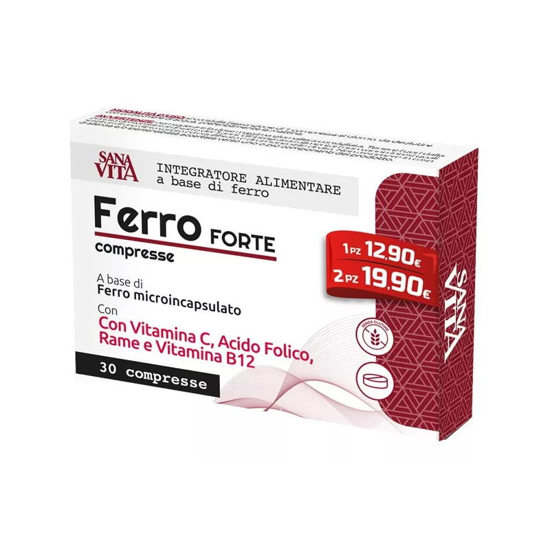 Descrizione Integratore alimentare a base di ferro microincapsulato, vitamina C, rame, acido folico, vitamina B12.