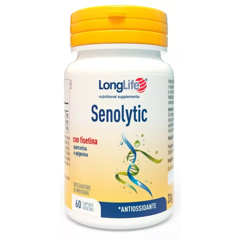 Ingredienti Cotinus coggygria Scop. corteccia e.s. tit. 30% fisetina (metodo HPLC), quercetina Indena Phytosome (e.s. di Sophora japonica L., lecitina di girasole, maltodestrina e silicio biossido), pompelmo Citrus paradisi pericarpo* e.s. tit. 95% apigenina (metodo HPLC), antiagglomerante (magnesio stearato vegetale). Capsula di origine vegetale in idrossipropilmetilcellulosa.