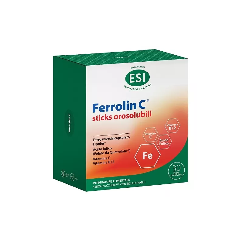 Descrizione Integratore alimentare a base di ferro, vitamina C, acido folico (folato) e vitamina B12, utili per apportare una quota integrativa di questi nutrienti in presenza di carenze alimentari o di aumentati fabbisogni organici. Il ferro contribuisce alla normale formazione dei globuli rossi e dell'emoglobina e al normale trasporto di ossigeno nell'organismo; contribuisce insieme a vitamina C, vitamina B12 e folato, alla normale funzione del sistema immunitario e alla riduzione di stanchezza e affaticamento, contribuisce al normale metabolismo energetico e alla normale funzione cognitiva. La vitamina C accresce l'assorbimento del ferro. L'assunzione integrativa di acido folico aumenta lo stato del folato materno. Un basso stato del folato materno è un fattore di rischio per lo sviluppo di difetti del tubo neuronale del feto. Il folato contribuisce alla normale emopoiesi e alla crescita dei tessuti materni in gravidanza. La vitamina B12 inoltre contribuisce alla normale formazione dei globuli rossi. Naturcaps: capsula vegetale, derivata dalla cellulosa.