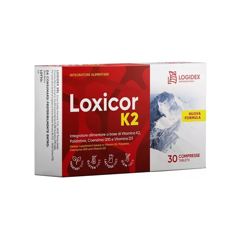 Ingredienti Agenti di carica: cellulosa microcristallina; polidatina (trans-resveratrolo 98% da radice di Polygonum cuspidatum Siebold & Zucc.); agenti antiagglomeranti: carbossimetilcellulosa sodica reticolata, biossido di silicio, sali di magnesio degli acidi grassi, talco; vitamina K2 (menachinone), coenzima Q10, vitamina D3 (colecalciferolo).