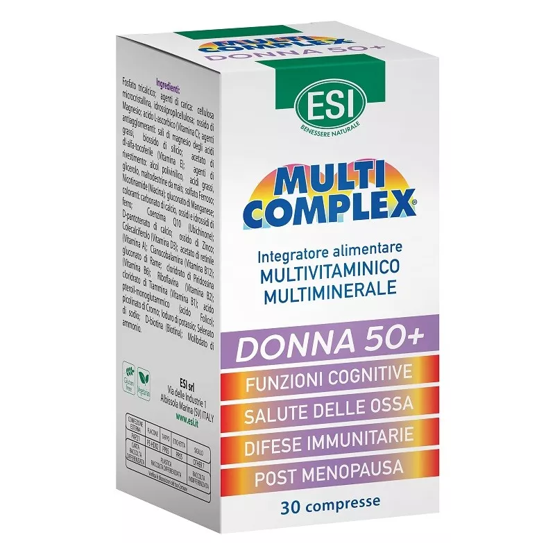 Descrizione Integratore alimentare conenente 12 vitamine e 11 minerali, utili per fornire una quota integrativa di tali nutrienti in caso di aumentati fabbisogni. Ha una formula bilanciata per la donna oltre i 50 anni di età.